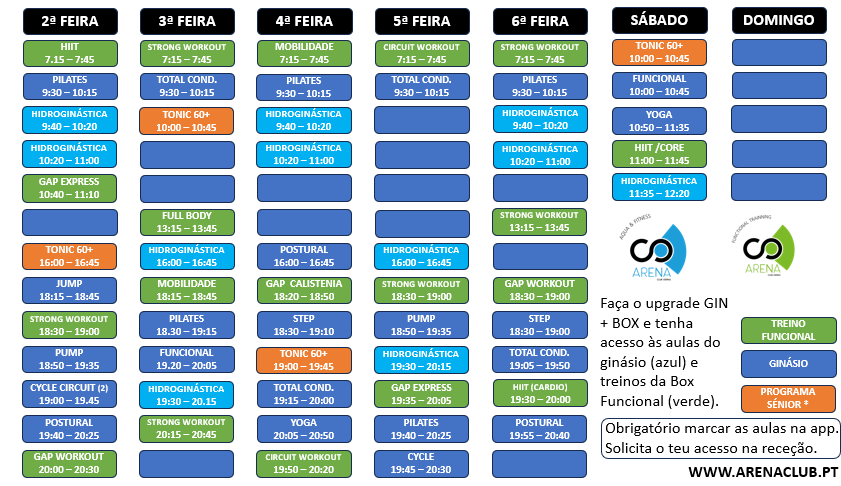 O ARENA CLUB numa campanha fantástica disponibiliza mais de 20 treinos semanais no nosso centro de treino Funcional para complementar os seus treinos e aulas do ginásio.